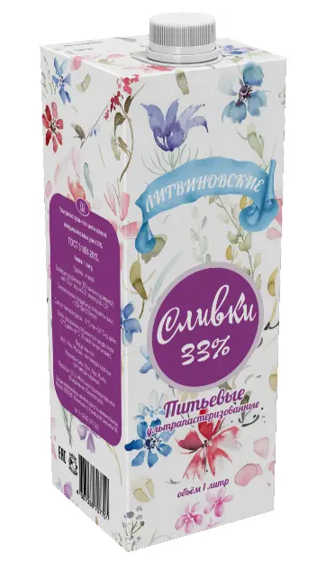 Сливки "Литвиновские" 33% 1 л