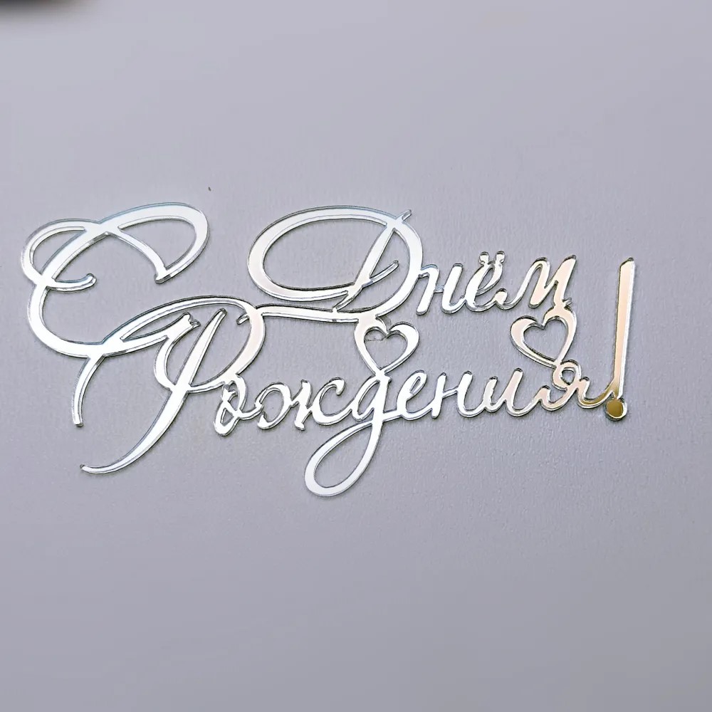 Топпер акрил "С Днем рождения маленькое сердце" серебро